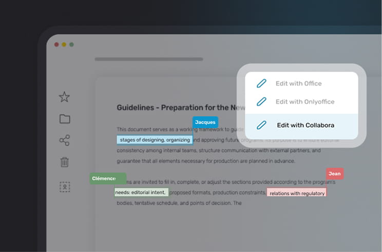 Oodrive Work integrates Collabora Online, OnlyOffice, and Microsoft 365 to enable secure online editing and co-editing of documents.